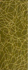painted contemporary logos on long strips of fabric